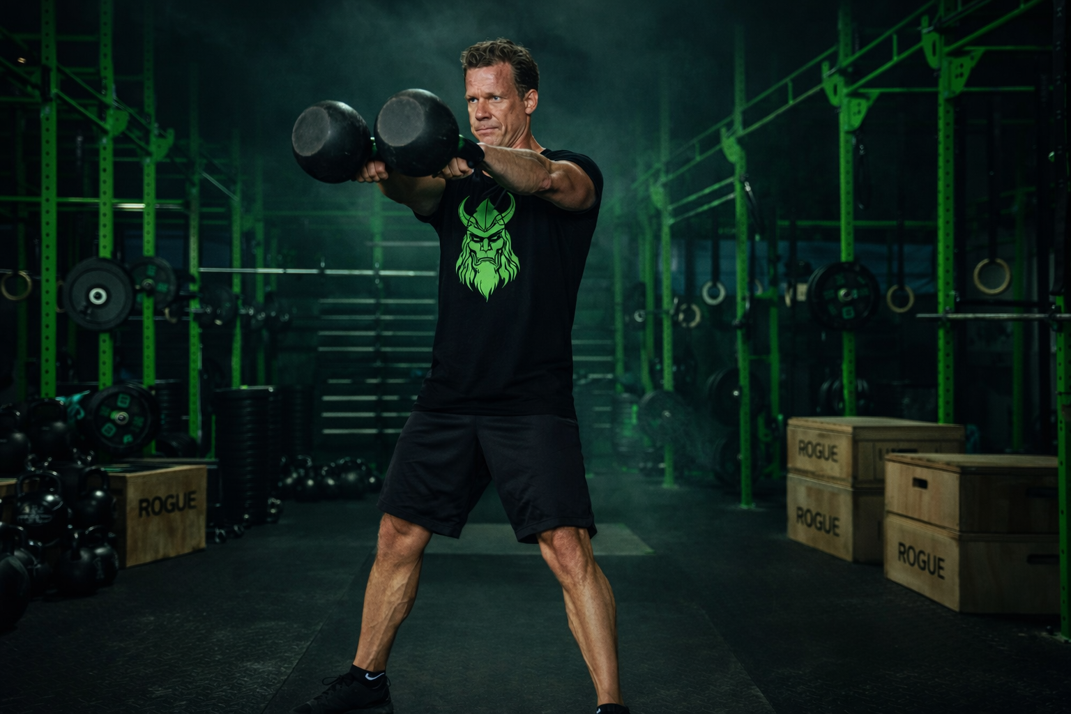 1. Minuta: 10 kettlebell swingů (1A)