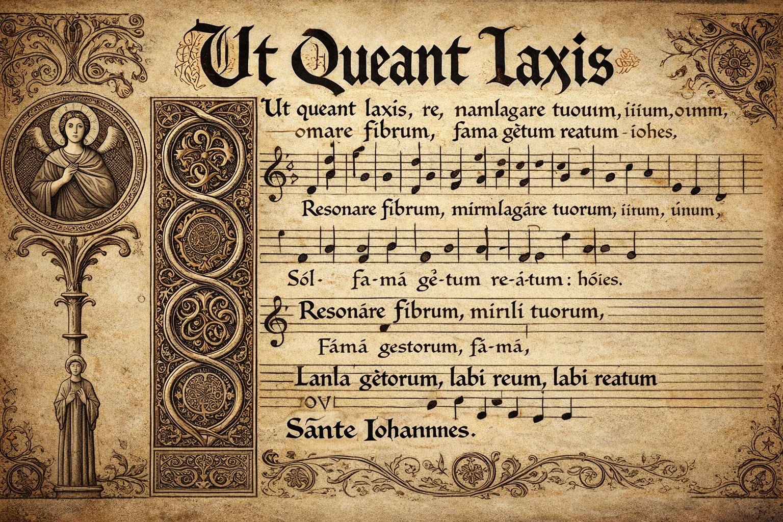 Právě z první slabiky každého z veršů tohoto raně středověkého chorálu byl odvozen první soubor solmizačních slabik UT, RE, MI, FA, SOL, LA.
